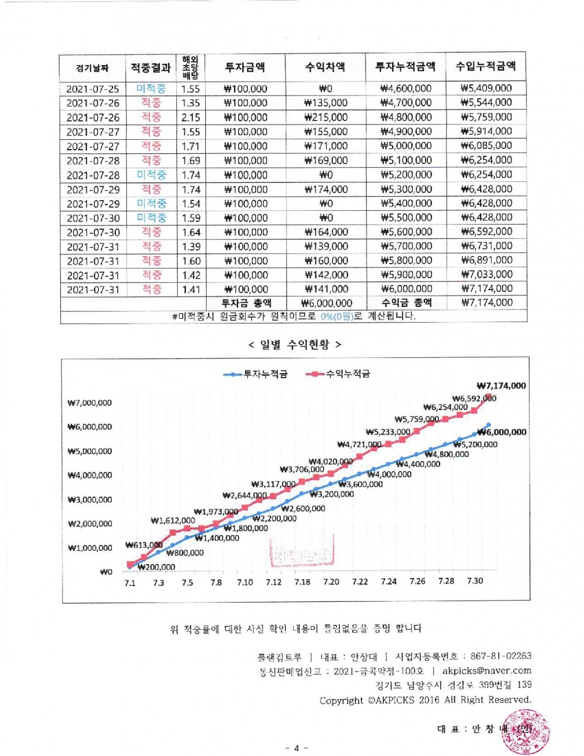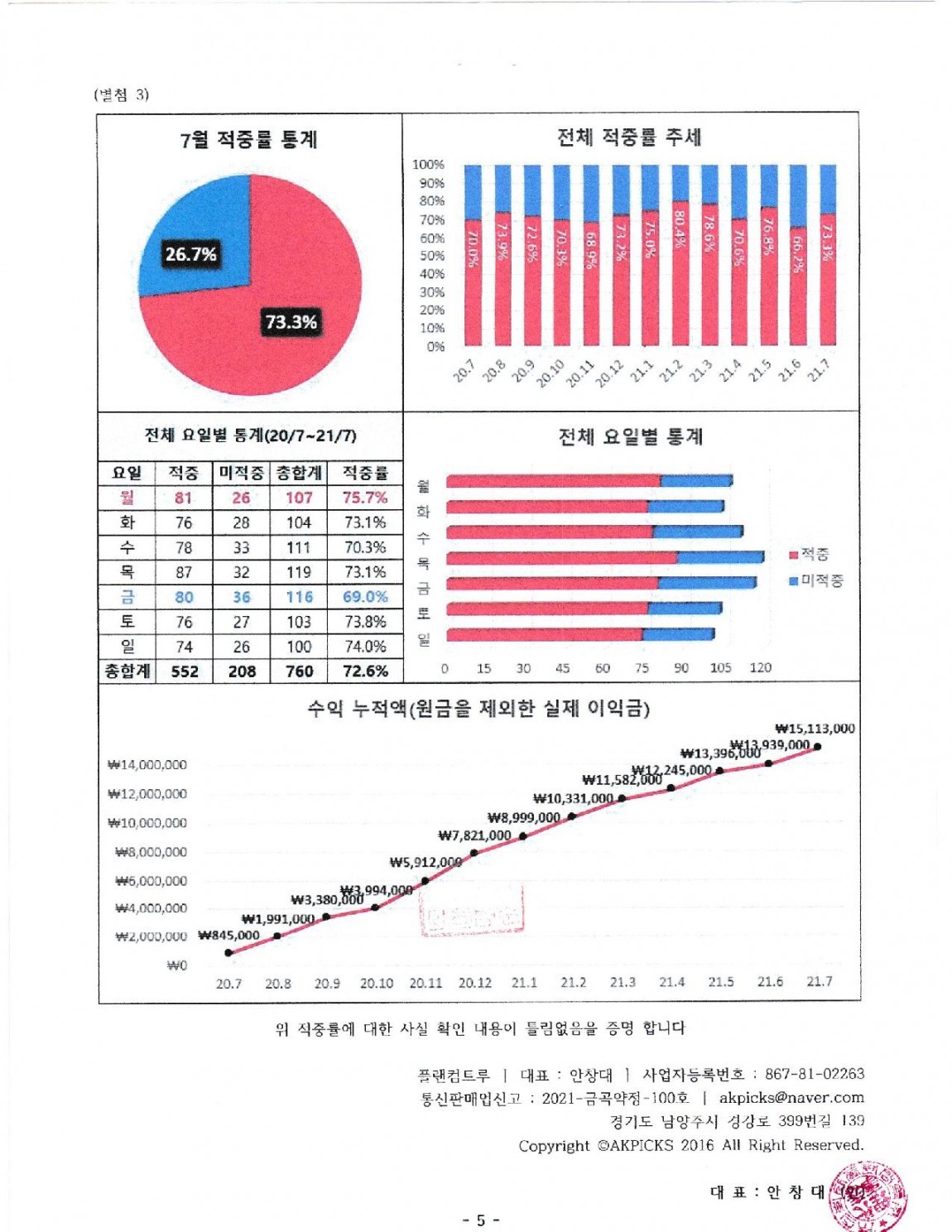 적중률 공증 확인