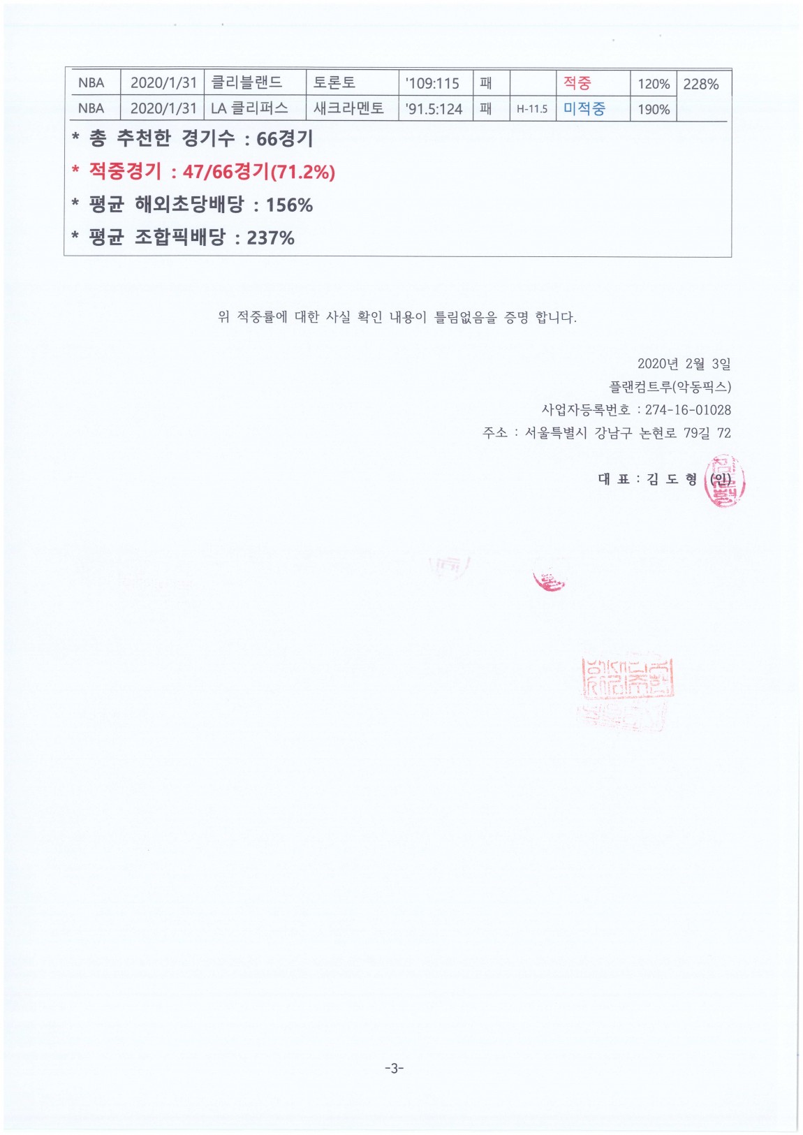 적중률 공증 확인