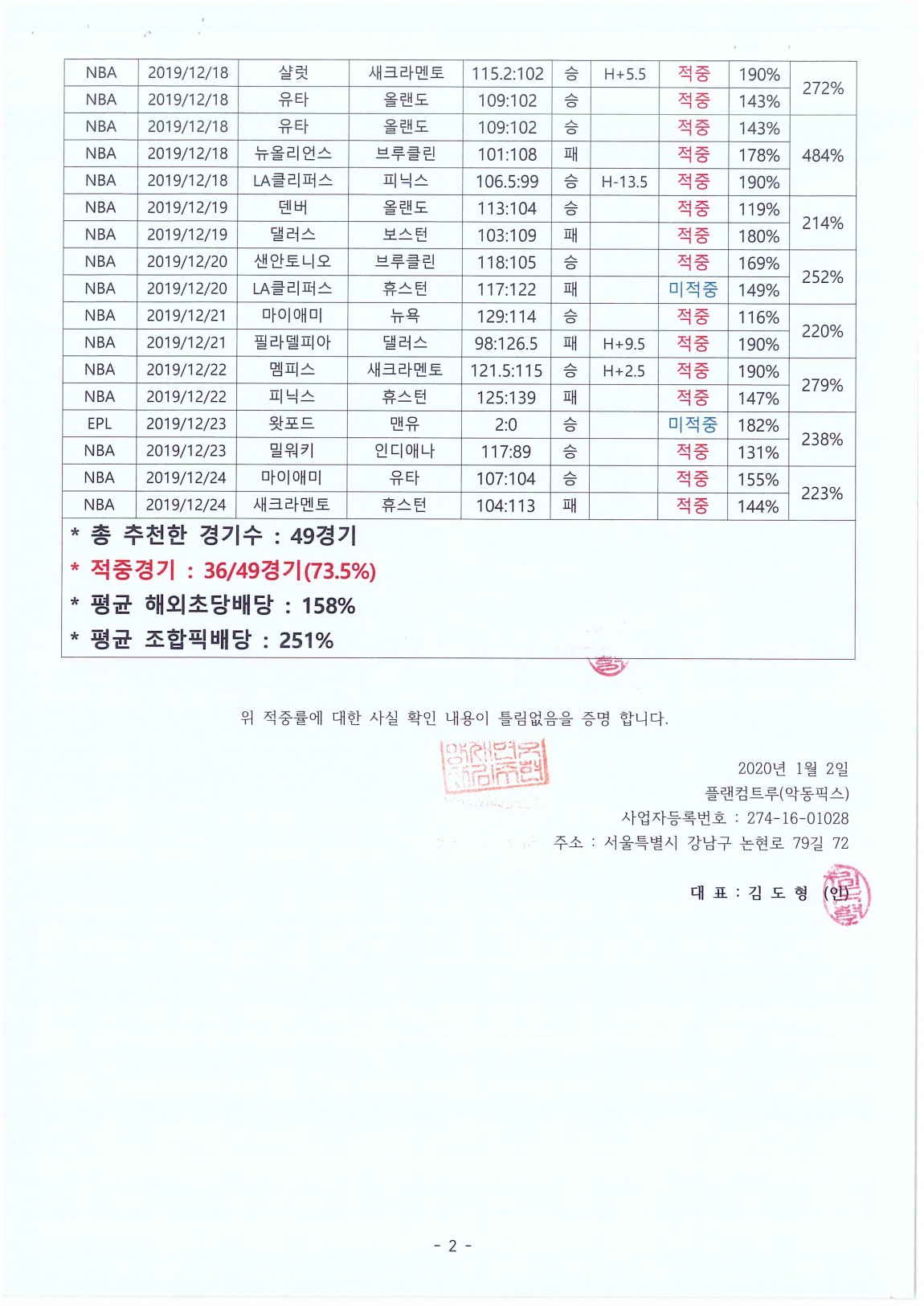 2019 - 12월 전체 적중률 공증