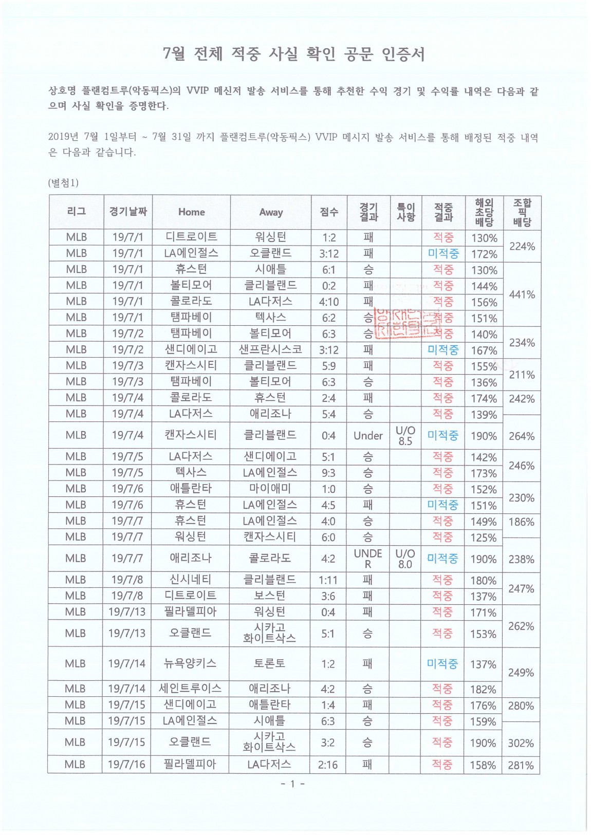 2019 - 7월 전체 적중률 공증