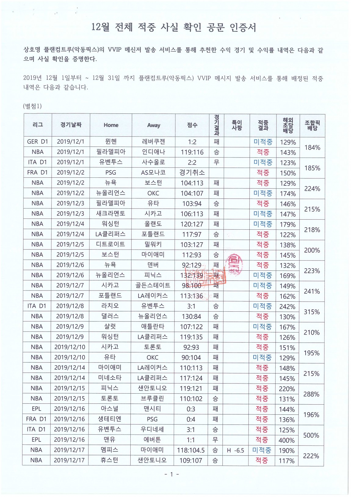 2019 - 12월 전체 적중률 공증