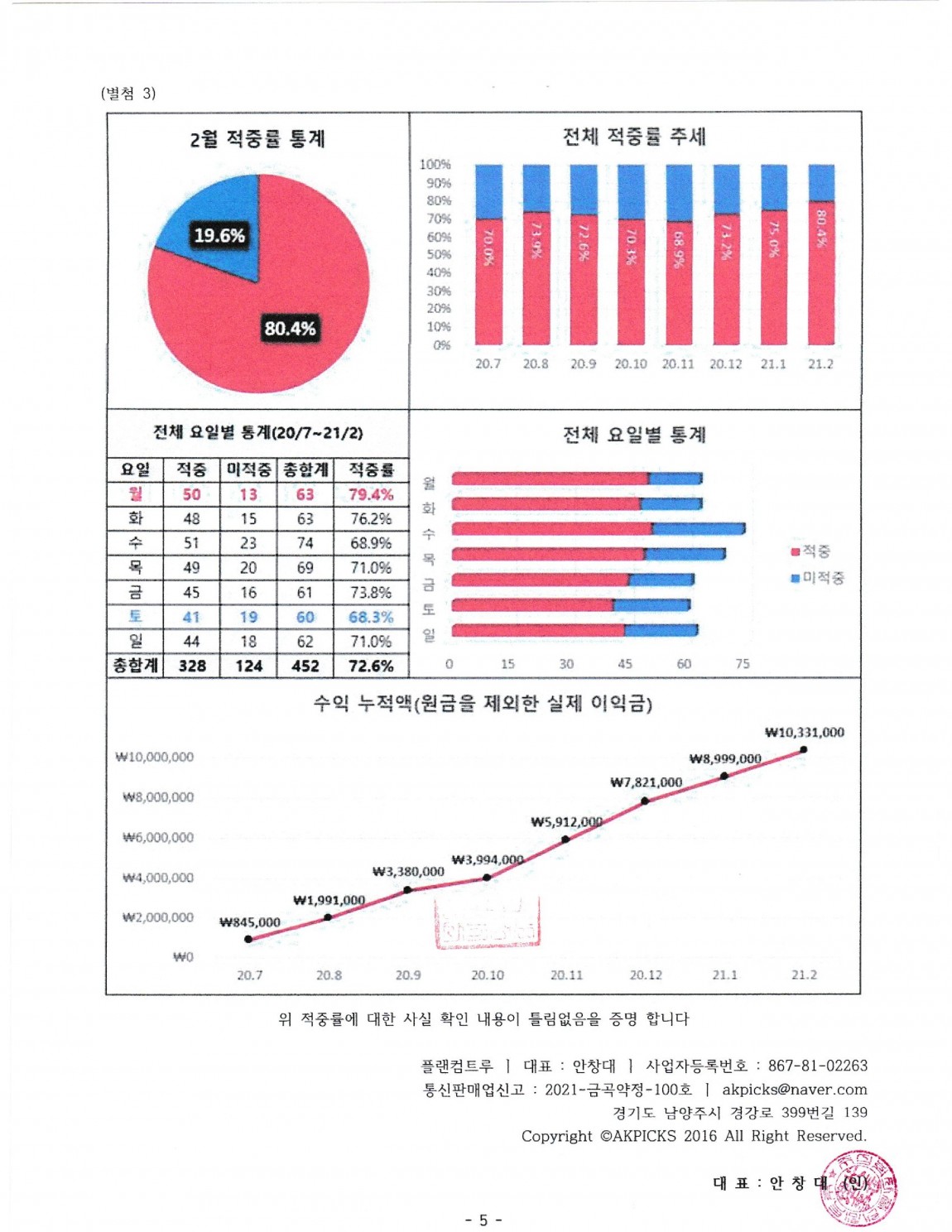 적중률 공증 확인