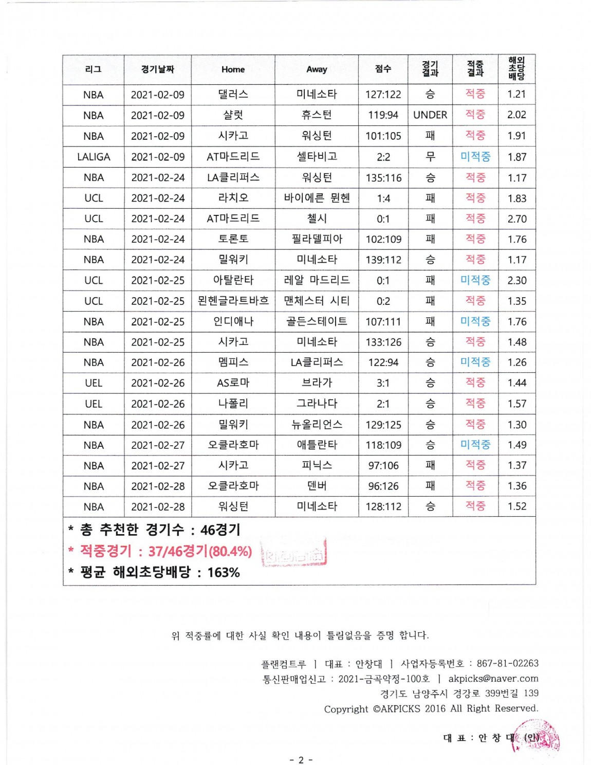 2021 - 02월 전체 적중률 공증