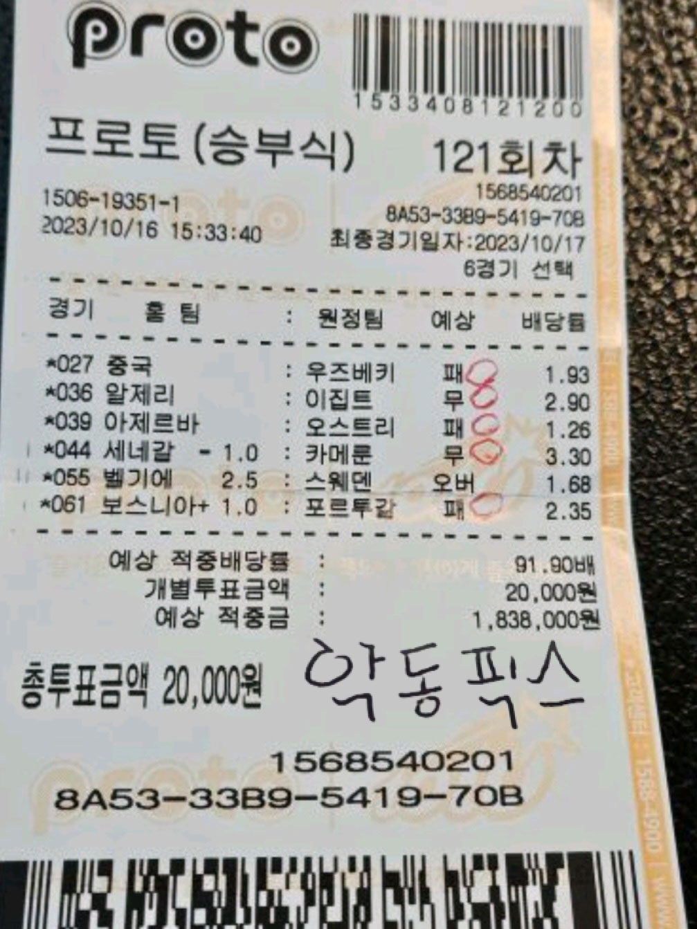 10월 16일 악동픽스 VVIP 김** 회원님 당첨 축하드립니다. 페이지 정보 작성자 최고관리자 조회132회 댓글0건 관련링크 이전글 다음글 목록 본문 김** VVIP 고객님 배당률 : 91.90배 투자금액 : 20,000원 당첨금액 : 1,838,000원 당첨을 진심으로 축하드립니다. 이전글 다음글 목록