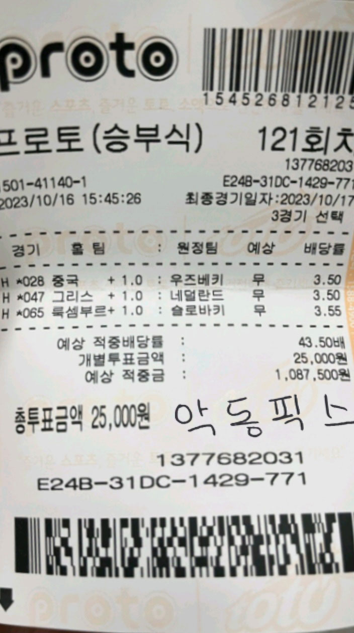 10월 16일 악동픽스 VVIP 이** 회원님 당첨 축하드립니다. 페이지 정보 작성자 최고관리자 조회139회 댓글0건 관련링크 이전글 다음글 목록 본문 이** VVIP 고객님 배당률 : 43.50배 투자금액 : 25,000원 당첨금액 : 1,087,500원 당첨을 진심으로 축하드립니다. 이전글 다음글 목록