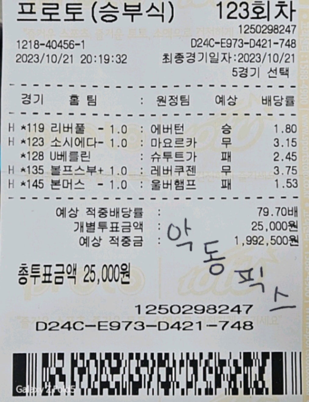 10월 21일 악동픽스 VVIP 고** 회원님 당첨 축하드립니다. 페이지 정보 작성자 최고관리자 조회140회 댓글0건 관련링크 이전글 다음글 목록 본문 고** VVIP 고객님 배당률 : 79.70배 투자금액 : 25,000원 당첨금액 : 1,992,500원 당첨을 진심으로 축하드립니다. 이전글 다음글 목록