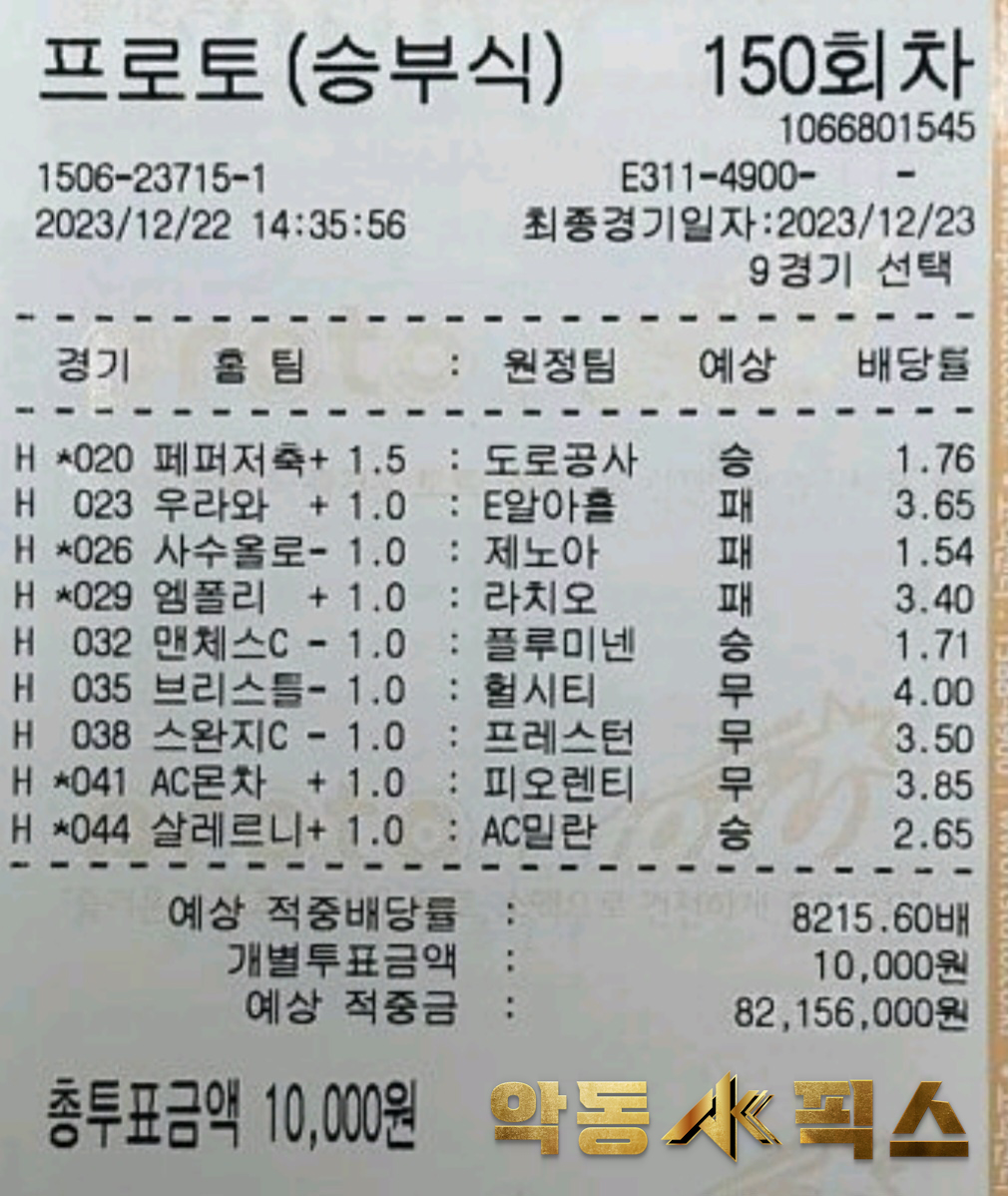 12월 22일 악동픽스 VVIP 김** 회원님 당첨 축하드립니다. 페이지 정보 작성자 최고관리자 조회169회 댓글0건 관련링크 이전글 다음글 목록 본문 김** VVIP 고객님 배당률 : 8215.60배 투자금액 : 10,000원 당첨금액 : 82,156,000원 당첨을 진심으로 축하드립니다. 이전글 다음글 목록